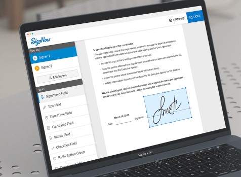 signNow’s desktop solution is instantly synced with the mobile app. That means users can start editing documents in their office and finish from their mobile device, even while offline. All data is securely stored in a private cloud and is instantly synced with the signNow network as soon as connection is restored.
