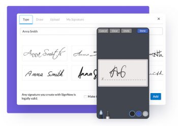 Empower users to create their legally-binding e-signature once, and instantly use it any time they need to sign a document in the future. They can draw or type their signature, or upload an image using a mobile device or desktop computer.